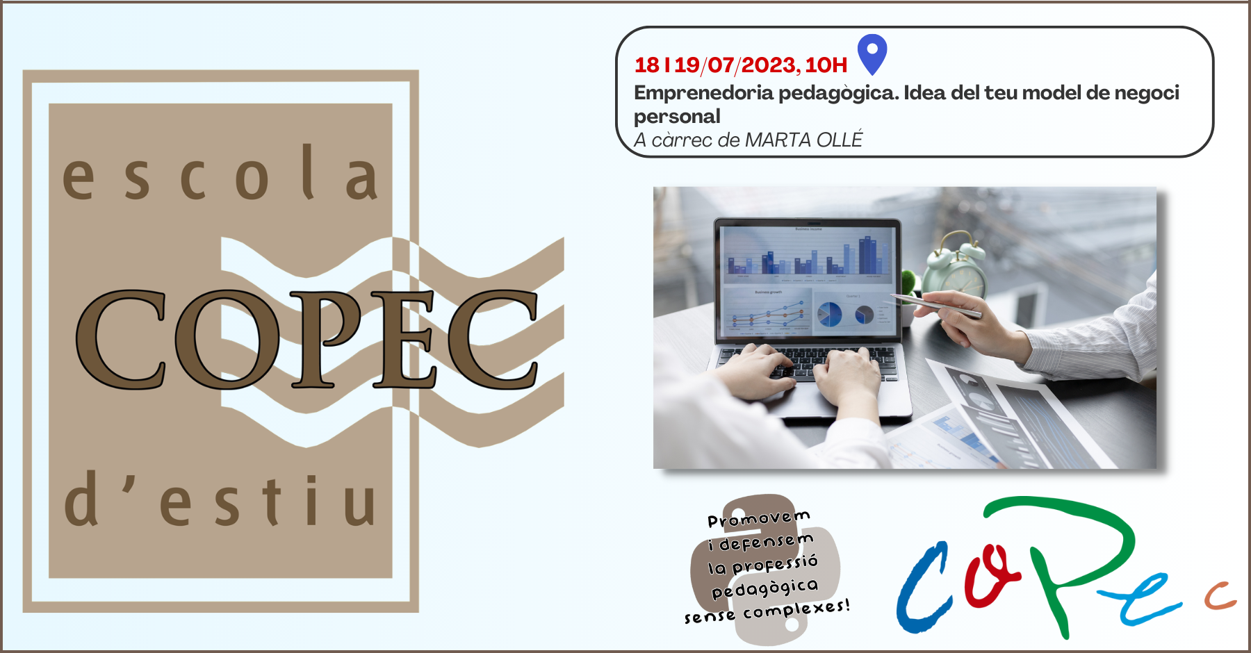 INICI > Activitats COPEC > EESTIU 2023: Emprenedoria pedagògica. Idea el teu model de negoci personal. PRESENCIAL - 18 i 19/07/23