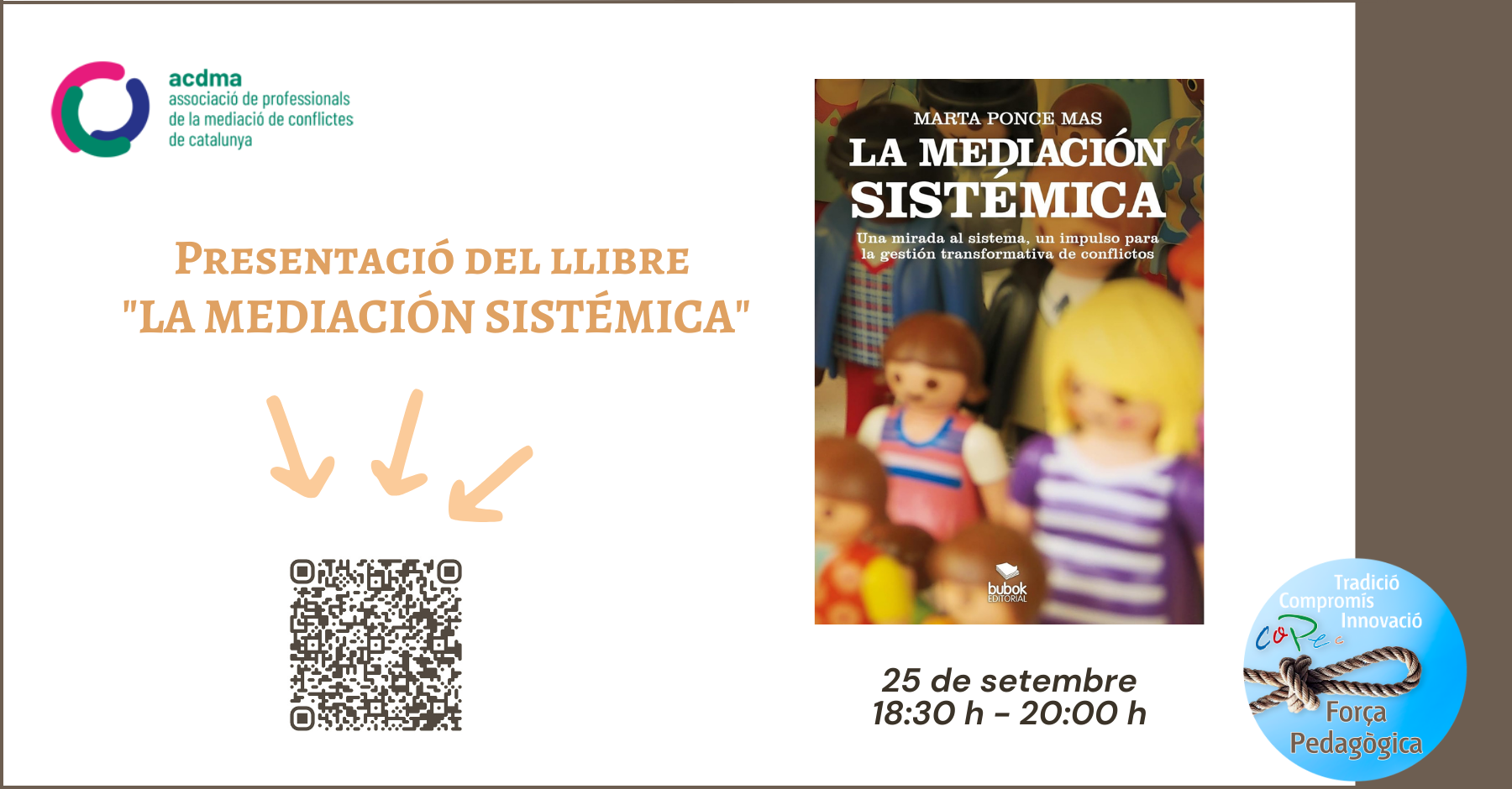 També tindrem l’oportunitat de llegir fragments del llibre així com debatre i reflexionar amb el públic sobre la mediació sistèmica dins del món de la mediació.