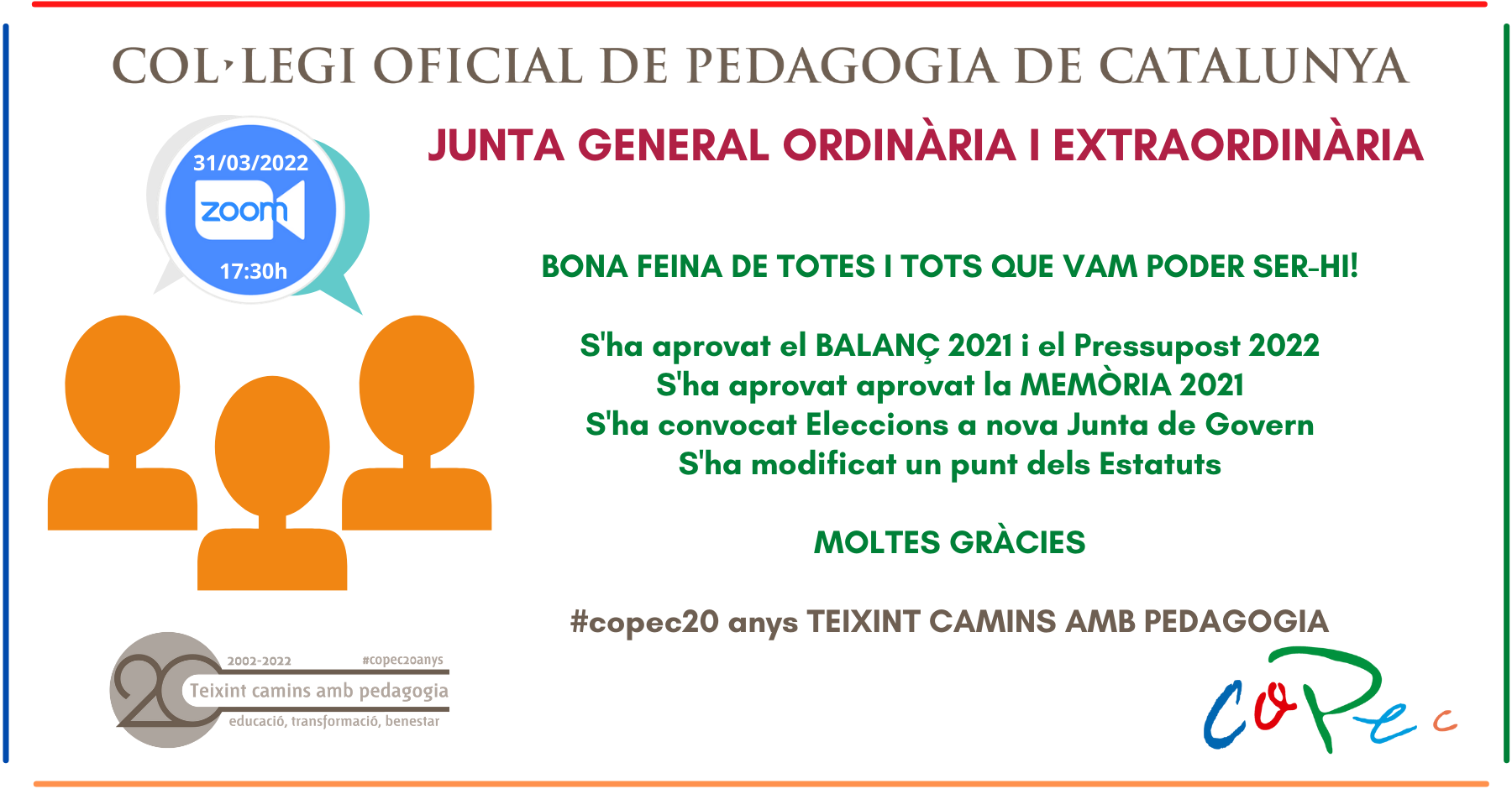 Col·legi Oficial de Pedagogia de Catalunya >  > JUNTA GENERAL ORDINÀRIA I EXTRAORDINÀRIA 31/03/22