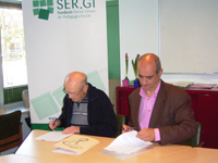 Josep Ribera, president del Patronat de la Fundació SER.GI i Josep Maria Elias, president del Col·legi de Pedagogs de Catalunya, van signar el dissabte 10 d'abril, un conveni de col·laboració en els àmbits que comparteixen les dues organitzacions.