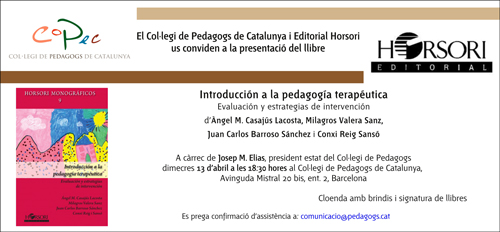 El Col·legi de Pedagogs de Catalunya i Horsori Editorial us conviden a la presentació del llibre: