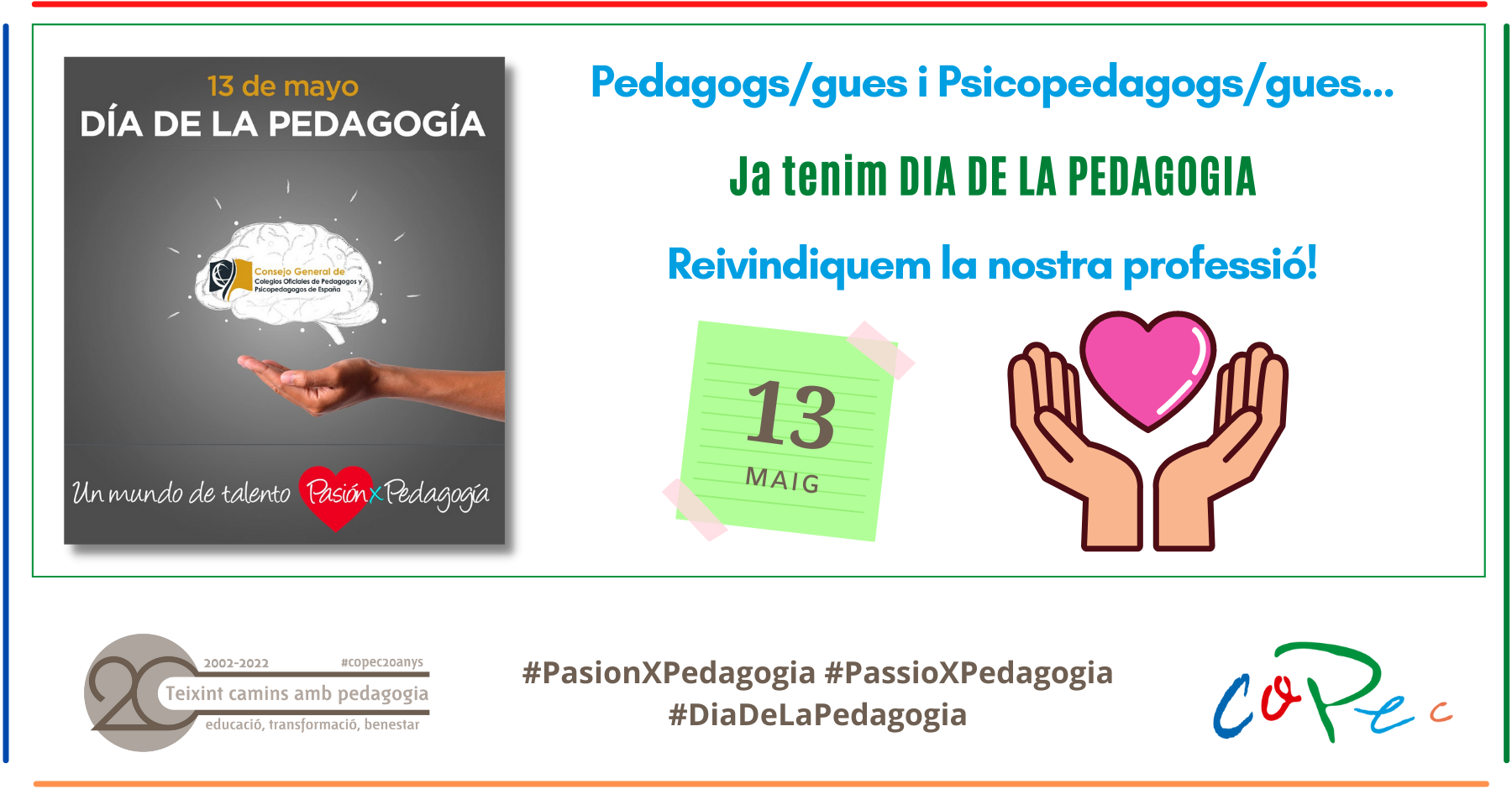 El 29 d’abril tret de sortida a la celebració del Dia de la Pedagogia a través de les Xarxes Socials: #PasionXPedagogia #PassioXPedagogia #DiaDeLaPedagogia