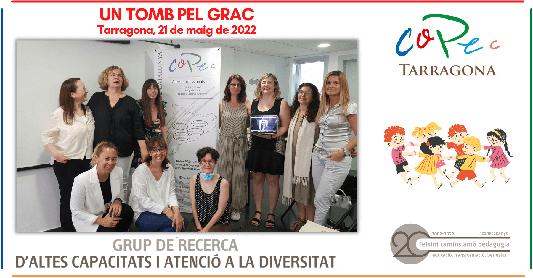 En plena celebració del 20è Aniversari del COPEC, seguim amb la reactivació dels actes presencials per les seus del COPEC a les províncies catalanes. Avui dissabte 21 de maig, a la seu de COPEC Tarragona, el Grup de Recerca d’Altes Capacitats i Atenció a la Diversitat, ha fet un recorregut per la seva trajectòria, des de la seva creació fins l’actualitat on s’ha pogut comprovar el nivell d’activitat i de coneixement que genera.