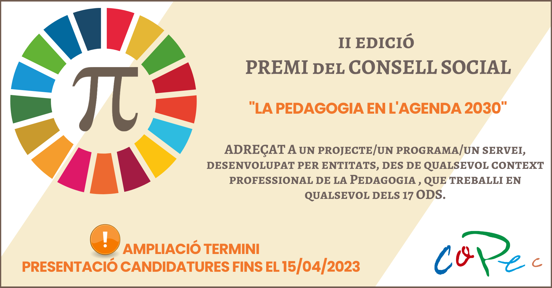 La voluntat de que la Pedagogia segueixi creixenti mostrant la seva integració amb el territori, oferint aquest equilibri en la II Premi del Consell Social “La Pedagogia en l’Agenda 2030” per fomentar la creació de vincles pedagògics amb la societat.