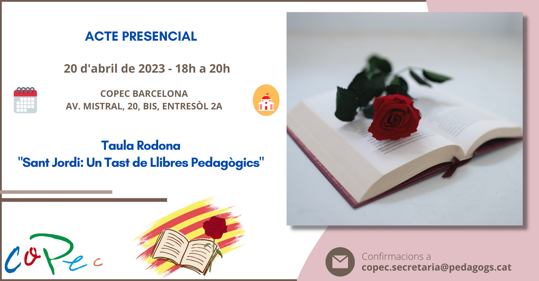SANT JORDI: UN TAST DE LLIBRES PEDAGÒGICS, 20 D’ABRIL DE 2023 A COPEC BARCELONA