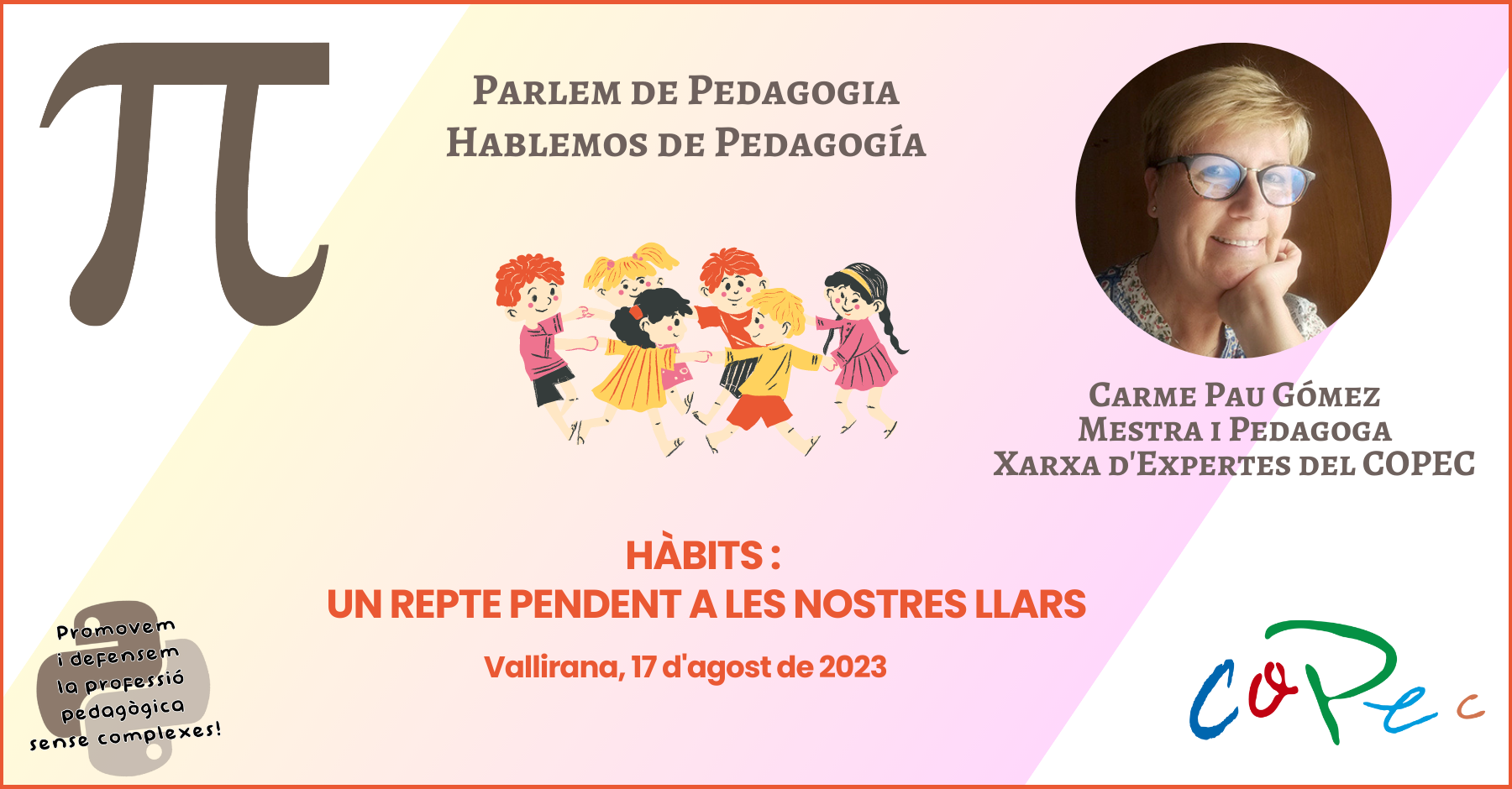 (*) Carme Pau Gómez, pedagoga i mestra. Col·legiada 1845, membre de la Xarxa d’Expertes del Col·legi Oficial de Pedagogia de Catalunya.Directora del DESPATX PEDAGÒGIC MULTIDISCIPLINARI http://despatxpedagogic.cat/index.php