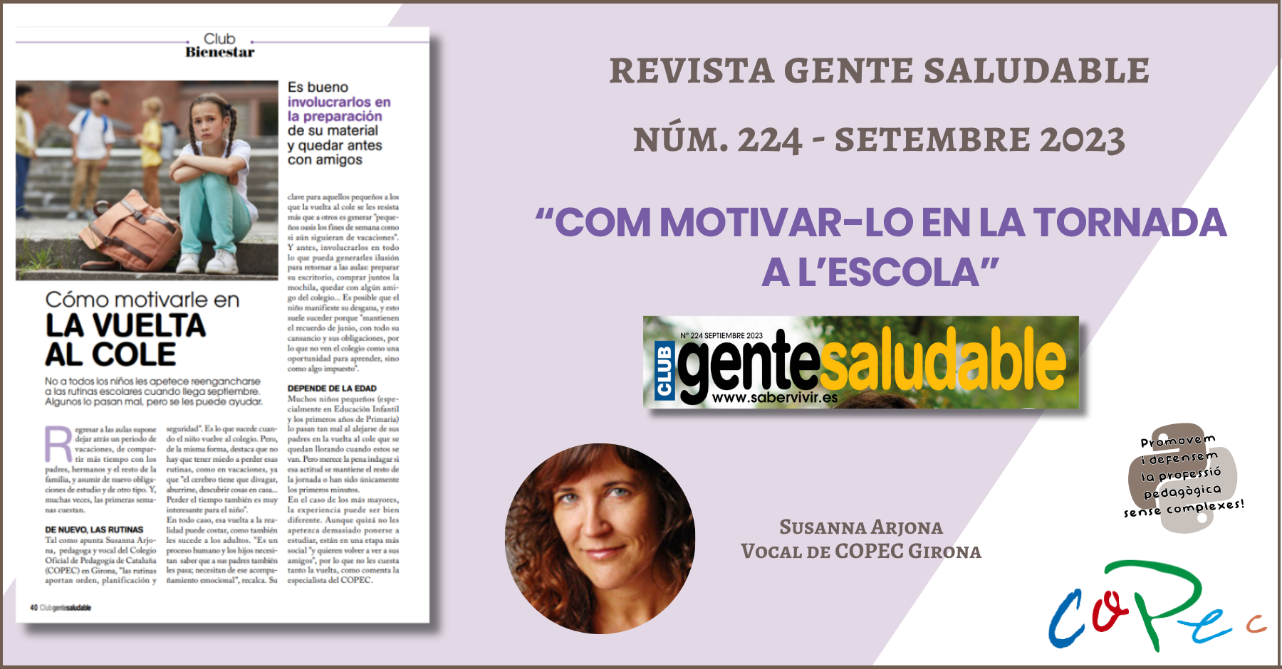 "COM MOTIVAR-LO EN LA TORNADA A L’ESCOLA", SUSANNA ARJONA - REVISTA GENTE SALUDABLE