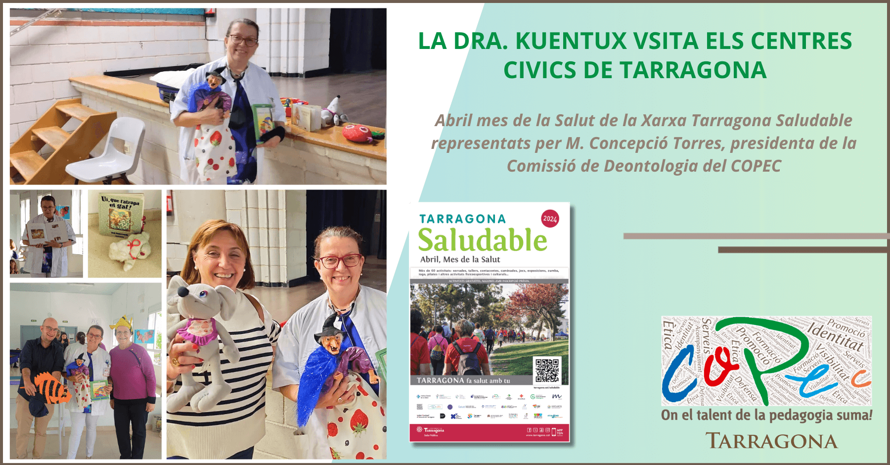 Enguany, el COPEC hi participa amb el CONTA CONTES de la SALUT, protagonitzat per M. Concepció Torres i el seu personatge, la DRA. KUENTUX, en col·laboració amb la Xarxa de Centres Cívics de Tarragona. Consulta al CARTELL les dates on podràs gaudir de l’activitat de Conta Contes a diversos centres cívics de la ciutat.