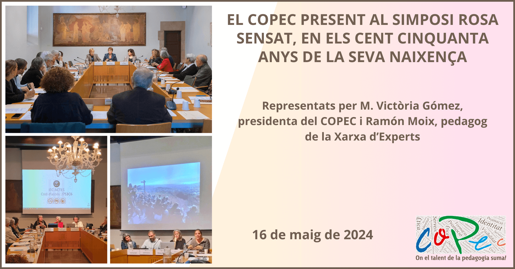 El passat 16 de maig el COPEC va estar present en el Simposi Rosa Sensat, representats per M. Victòria Gómez, presidenta del COPEC i Ramón Moix, pedagog de la xarxa d’experts.