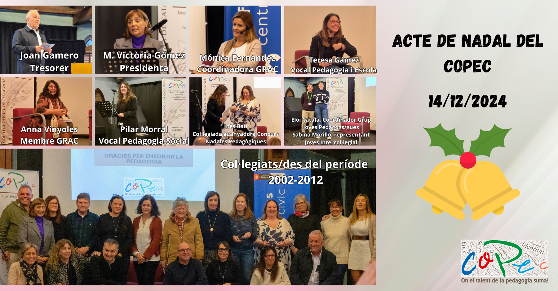 Aquest dissabte el Col·legi Oficial de Pedagogia de Catalunya s’ha posat de gal·la per al últim acte de l’any, en un desplegament pedagògic inter-generacional per a mostrar la part més emotiva i lúdica del COPEC. En la benvinguda en Joan Gamero, tresorer i conductor de l’acte, ha presentat el Vídeo Corporatiu del COPEC, que vol ser la Carta de Presentació d’un Col·legi jove i consolidat i que trepitja fort.