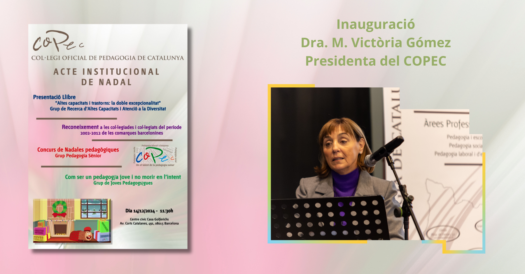 Bon dia a totes i tots, benvinguts a aquesta entranyable celebració en el marc de les festes nadalenques tan properes i en aquest espai incomparable que ja és com la segona seu del COPEC.