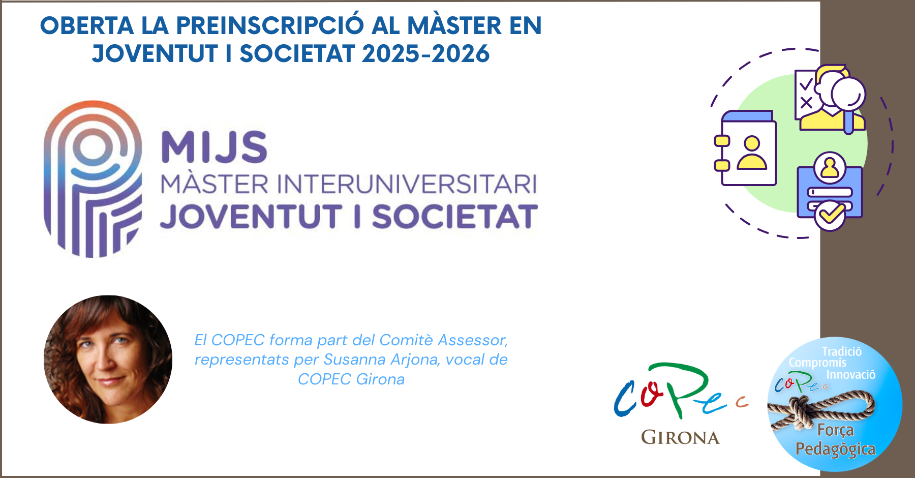 OBERTA LA PREINSCRIPCIÓ AL MÀSTER EN JOVENTUT I SOCIETAT 2025-2026