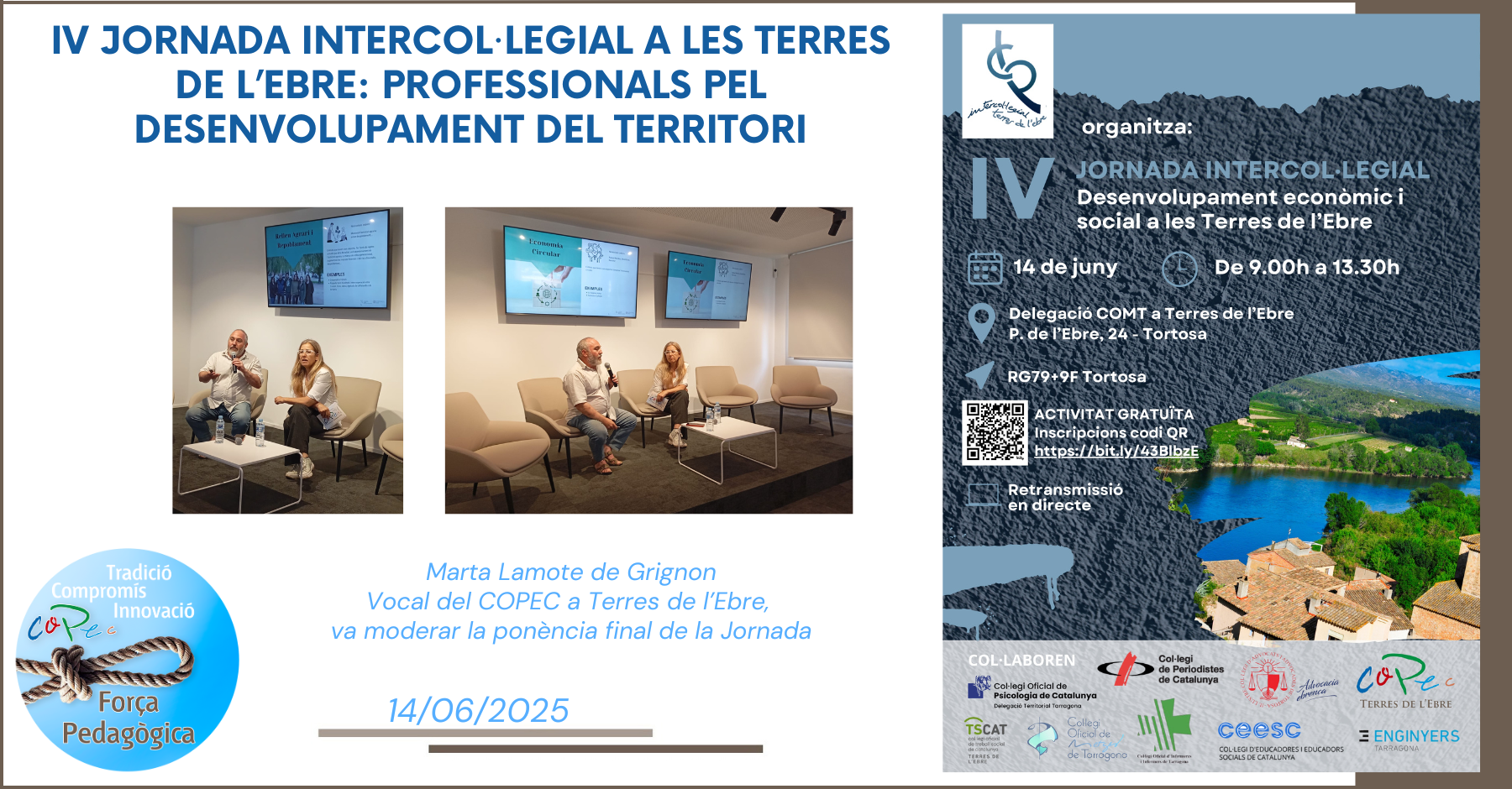 IV JORNADA INTERCOL·LEGIAL A LES TERRES DE L’EBRE: PROFESSIONALS PEL DESENVOLUPAMENT DEL TERRITORI