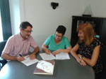 Catalunya, conjuntamente con la vocalía de Girona, y Ramón Moreno, presidente de la Fundació Campus Arnau d'Escala, para firmar la