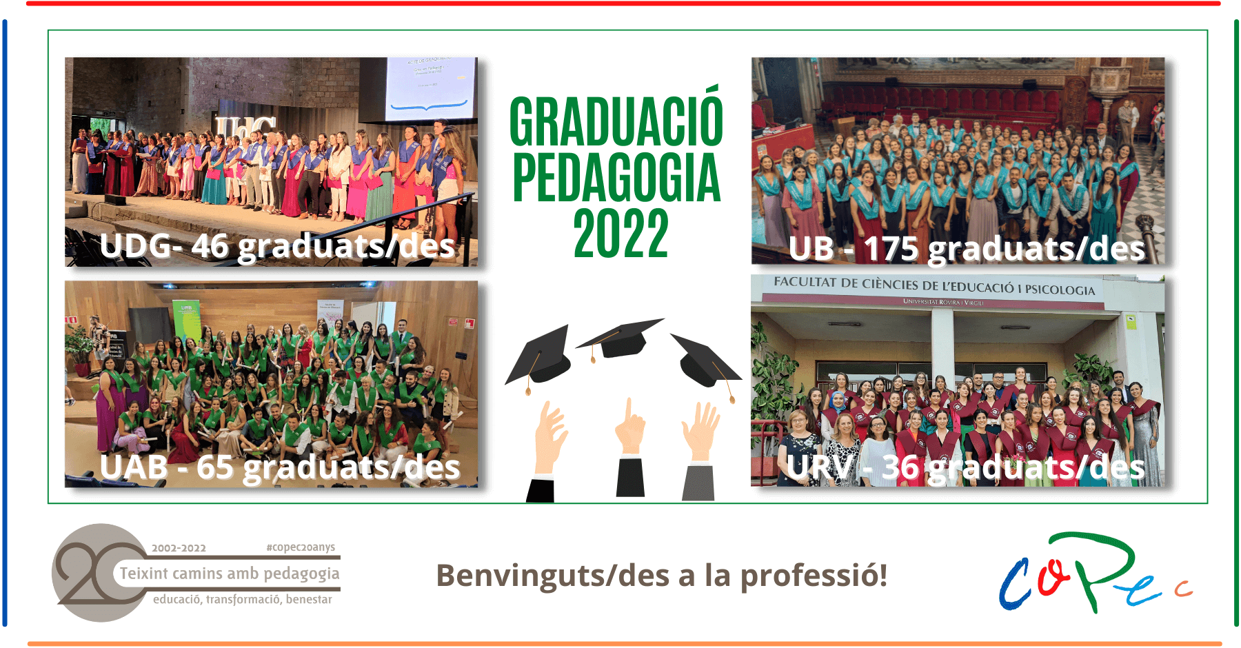 Desde el COPEC queremos felicitar y dar nuestra enhorabuena a las 324 pedagogas y pedagogos de las universidades catalanas que se han graduado este año!