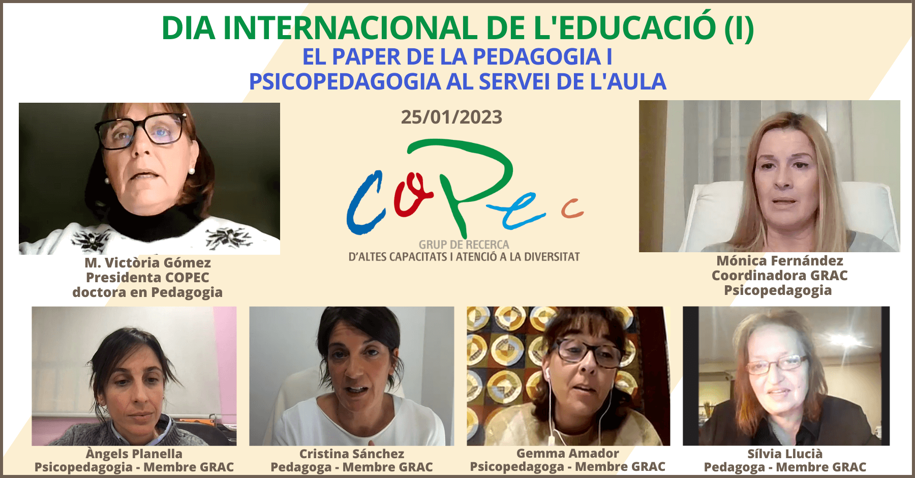Hoy, 25 de enero, desde el Grupo de Investigación de Altas Capacidades y Atención a la Diversidad del COPEC, se ha llevado a cabo la actividad "El Papel de la Pedagogía y Psicopedagogía en el Servicio del Aula", en el marco del Día Internacional de la Educación.