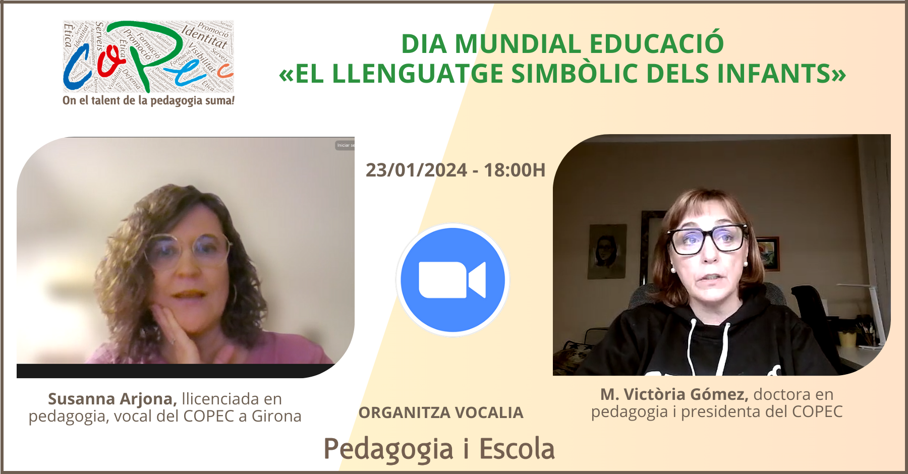Ayer, en el marco del DÍA ITNERNACIONAL DE LA EDUCACIÓN que hoy celebra su VI Edición, el Col·legi Oficial de Pedagogia de Catalunya organizó un webinar para abordar EL LENGUAJE SIMBÓLICO DE LOS NIÑOS/AS, a cargo de SUSANNA ARJONA, vocal del COPEC en GIRONA.