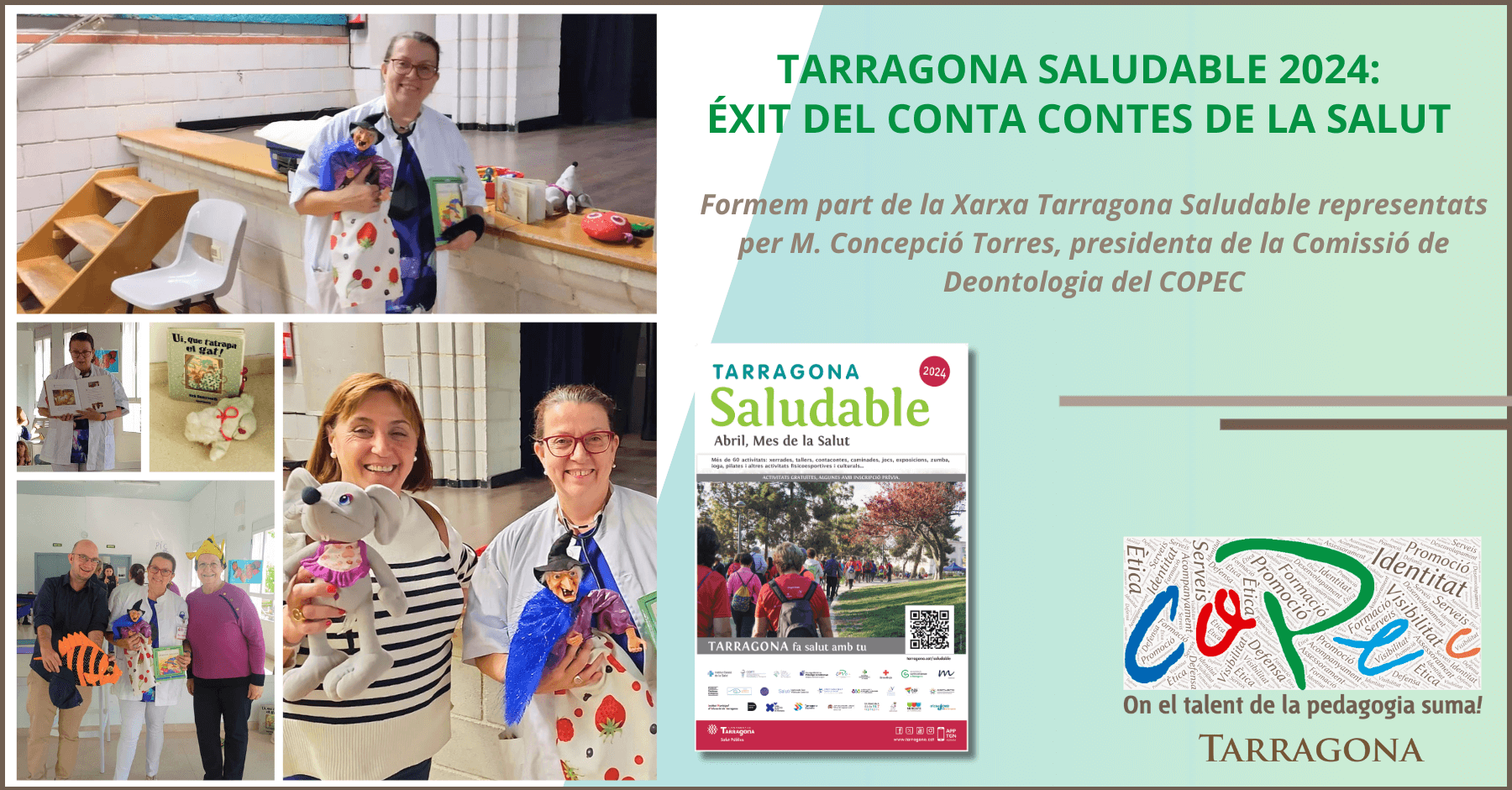 Este año, el COPEC participa con el CUENTA CUENTOS de la SALUD, protagonizado por M. Concepció Torres y su personaje, la DRA. KUENTUX, en colaboración con la Red de Centros Cívicos de Tarragona. Consulta en el CARTEL las fechas donde podrás disfrutar de la actividad de Cuenta Cuentos en varios centros cívicos de la ciudad.