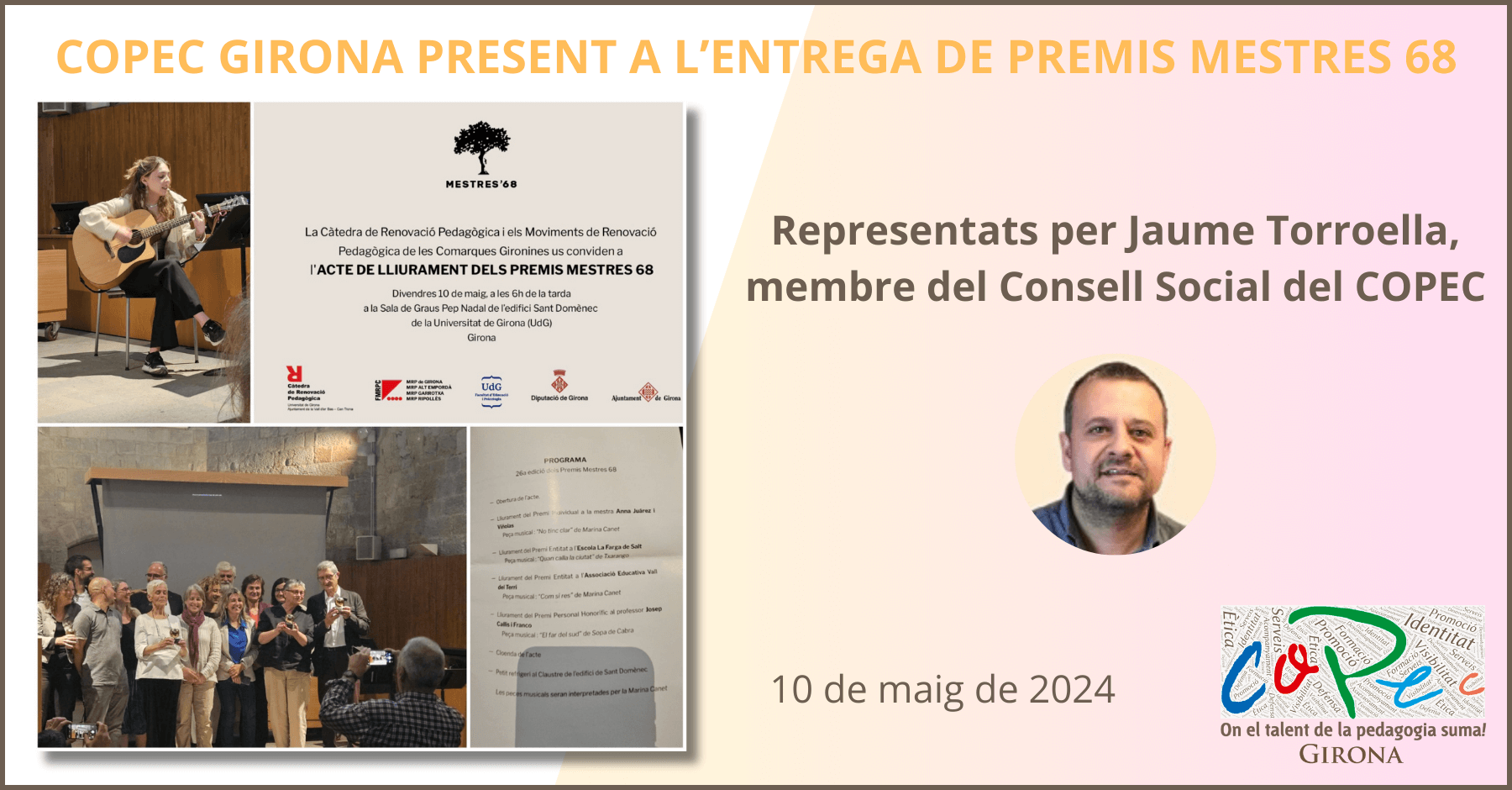 del Consell Social, representó al COPEC en el acto de entrega de los 26è Premis Mestres 68, un evento destinado a reconocer la trayectoria y el