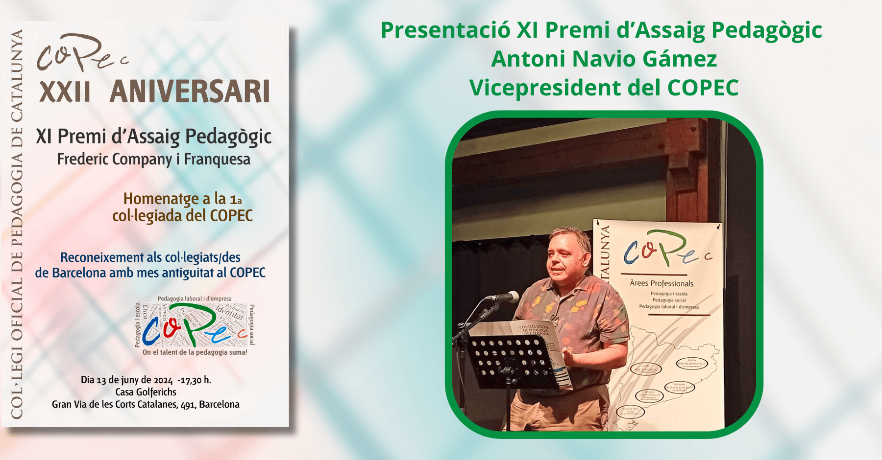 El Premio de Ensayo Pedagógico Frederic Company i Franquesa, un premio que habla muy bien de nuestra manera de entender, practicar y vivir nuestra profesión, que ha evolucionado desde su creación, con una mirada abierta, a personas colegiadas y no colegiadas, consolidado con una periodicidad bianual desde 2017 (con la preceptiva parada por la pandemia).