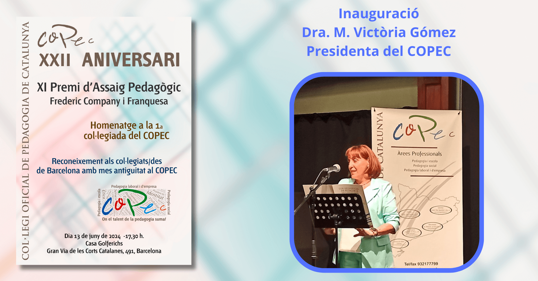 ¡22º Aniversario del COPEC! Buenas tardes a todas y todos, bienvenidos a la celebración del día del COPEC en este marco modernista, tan acogedor, de la Casa Golferichs y en un día tan señalado.