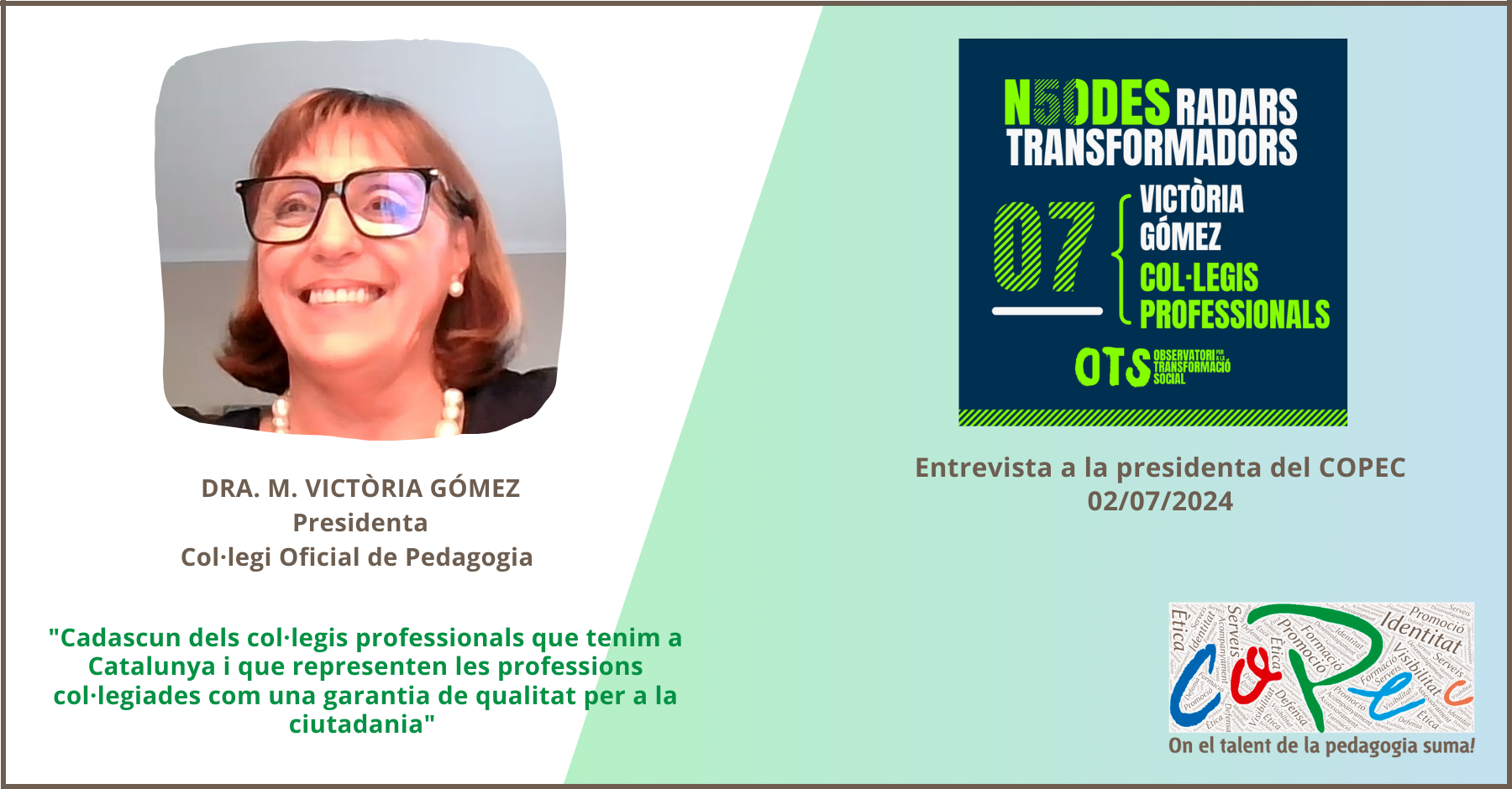 - "En cuanto al Col·legi Oficial de Pedagogia de Catalunya (COPEC), tenemos tres focos: social/comunitario, educación formal/no formal y de las organizaciones (laboral/empresa). Esto genera dispersión y el reto de gestionar."