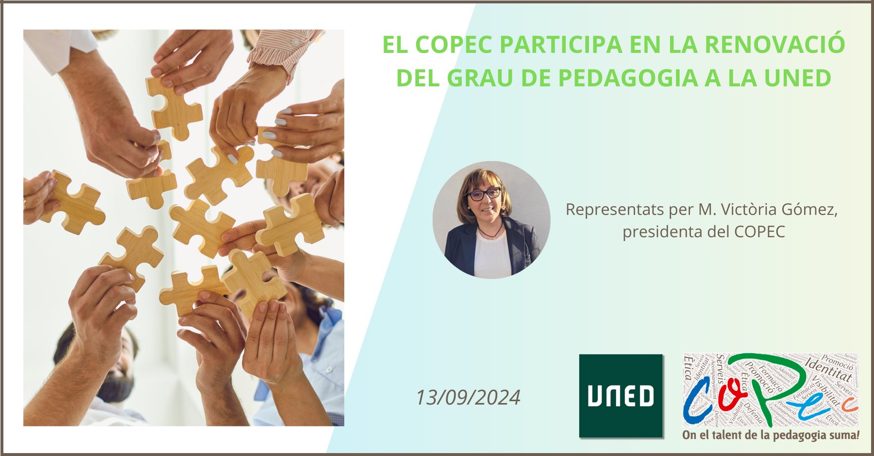 Desde el COPEC continuamos trabajando, especialmente con las universidades catalanas, por esta renovación del Grado de Pedagogía con la ilusión de aportar las necesidades reales de formación que los egresados necesitan en el mercado laboral, así como poder construir nuevas oportunidades de trabajo para los pedagogos/as, profesión emergente en nuestra sociedad.