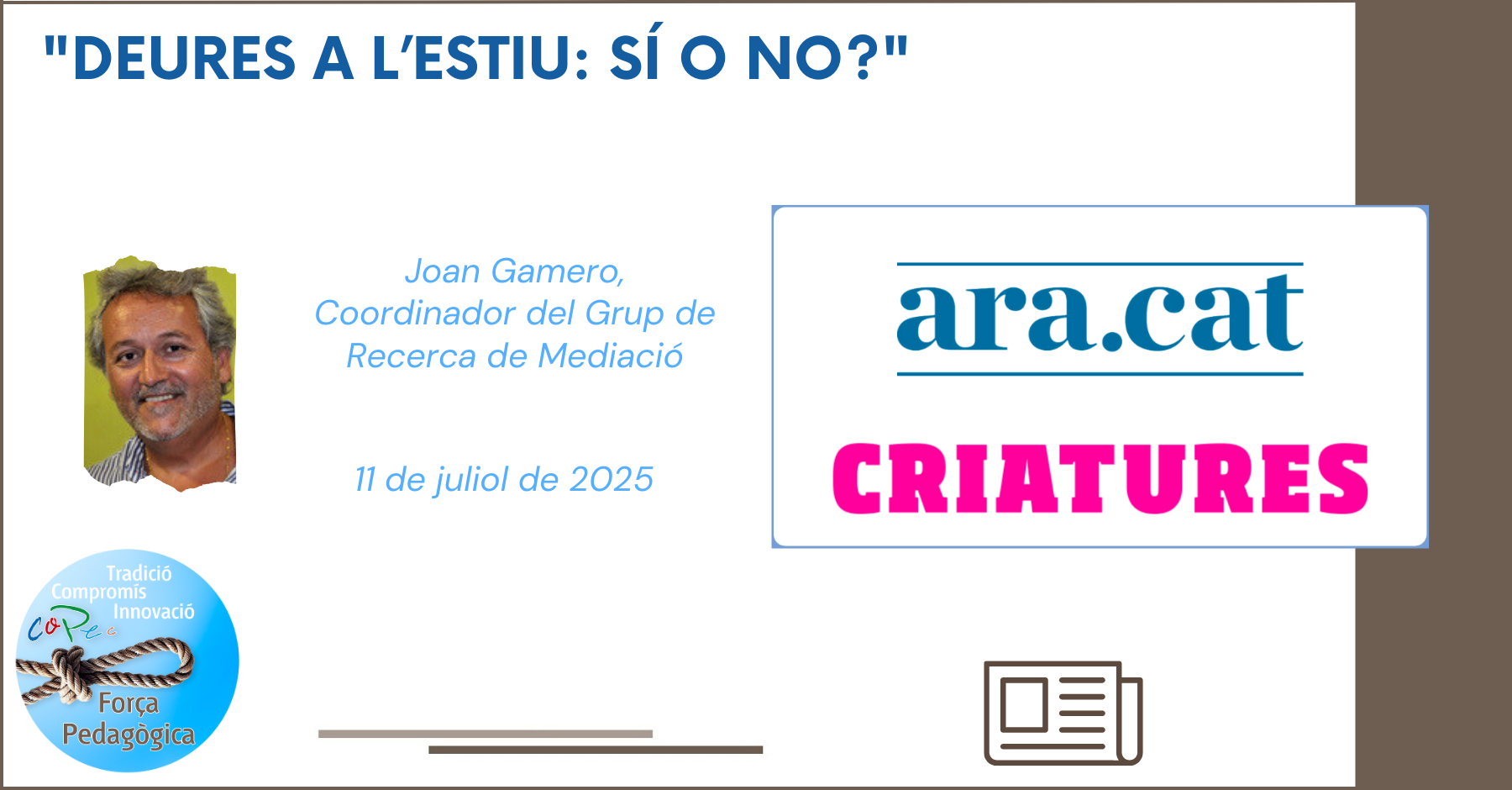 "¿DEBERES EN VERANO: SÍ O NO?", ARA CRIATURES - JOAN GAMERO