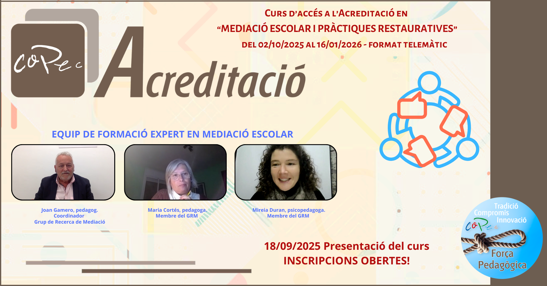CURS "ACREDITACIÓ EN MEDIACIÓ ESCOLAR I PRÀCTIQUES RESTAURATIVES"