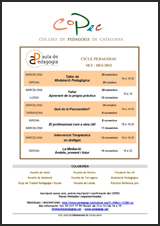 Des d’Aula de Pedagogia del Col·legi de Pedagogs de Catalunya (COPEC) s’organitza aquest segon cicle de la mà de professionals, experts i expertes de diferents especialitats de l'àmbit educatiu, de la salut i social, que ens presentaran noves metodologies i analitzaran temàtiques de gran interès per als professionals i estudiants de pedagogia i psicopedagogia i professionals en general dels àmbits esmentats.