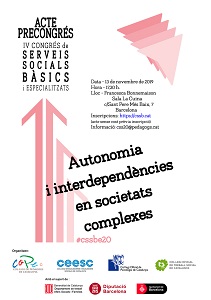 L'Acte Precongressual del 13 de novembre de 2019 a l’Espai Bonnemaison obre una nova edició que presentarà el IV Congrés de Serveis Socials Bàsics i Especialitzats el qual tindrà per lema: DEPENDÈNCIES AL LLARG DEL CICLE VITAL. ENFORTIMENT I AUTONOMIA i se celebrarà a l'octubre del 2020.