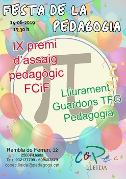 Se hará el 14 de junio a las 17:30h en la sede del COPEC LLEIDA (Rambla Ferran, 32, Lleida), coincidiendo con el 17º aniversario (2002-2019) del Col·legi de Pedagogs.