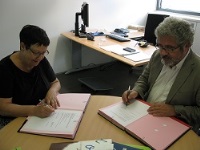 La presidenta del Col·legi de Pedagogs de Catalunya, Rosa Rodríguez -acompanyada per la secretaria de la Junta de Govern, M. Concepció Torres- i el president d’AQU Catalunya, Josep Joan Moreso, van signar el passat 21 de setembre, un acord marc de col·laboració per a la participació en processos d'avaluació de la qualitat del sistema universitari català.