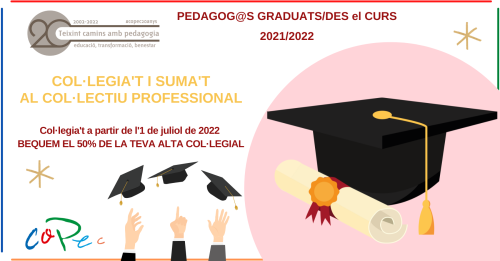 El Col·legi Oficial de Pedagogia de Catalunya, referent professional dels pedagogs/gues i psicopedagogs/gues, us dona la benvinguda a la professió i us BECA el 50% de la vostra ALTA COL·LEGIAL per a què pugueu incorporar-vos al COPEC i tenir suport en el vostre camí professional.