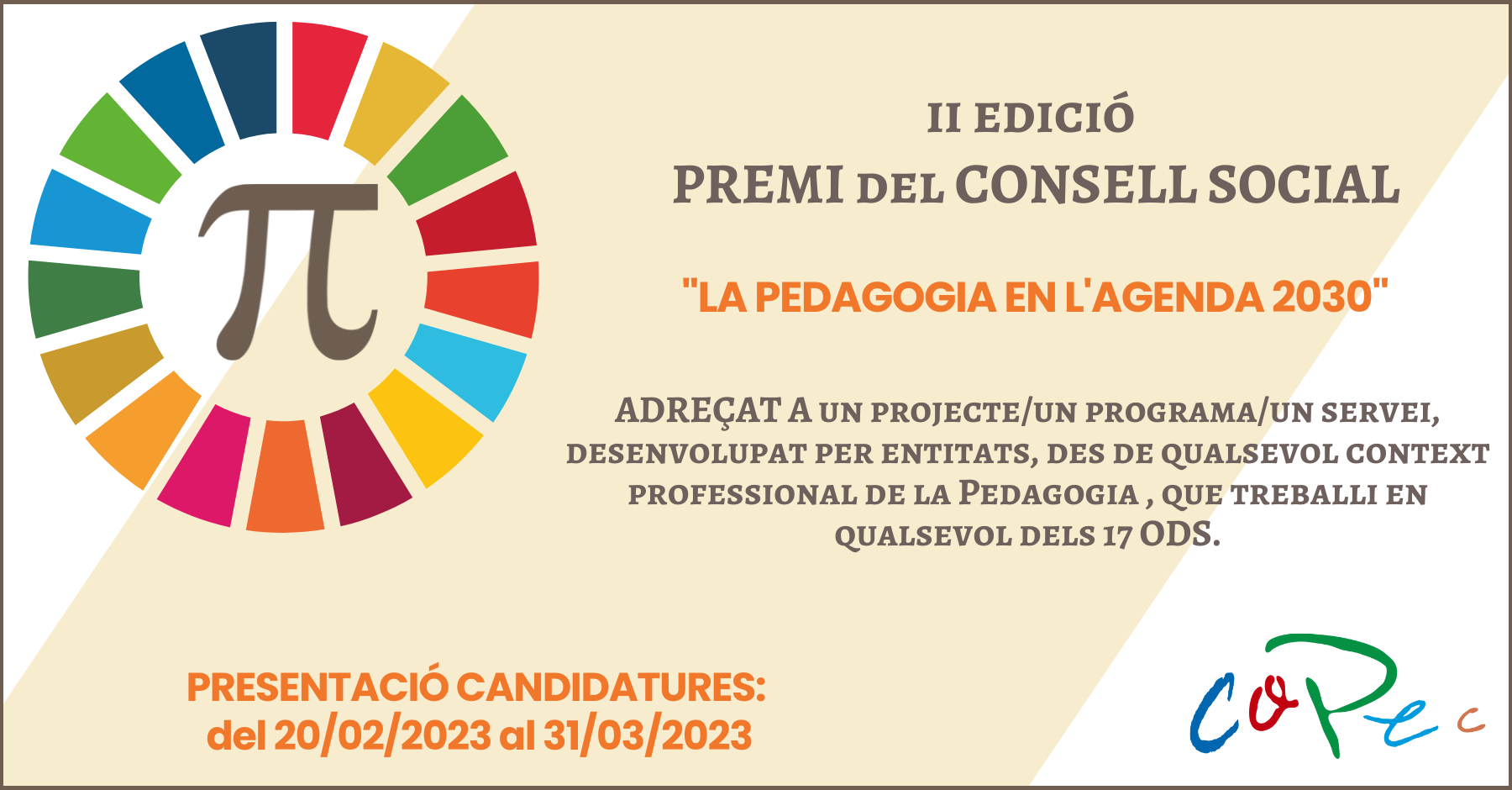La voluntat de que la Pedagogia segueixi creixenti mostrant la seva integració amb el territori, oferint aquest equilibri en la II Premi del Consell Social “La Pedagogia en l’Agenda 2030” per fomentar la creació de vincles pedagògics amb la societat.