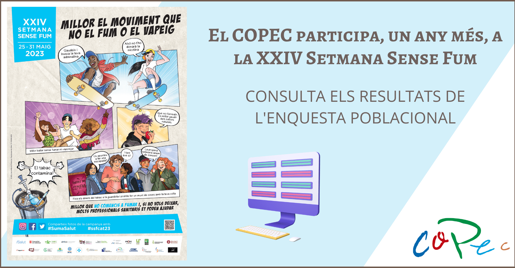 El COPEC participa, un any més, en la SETMANA SENSE FUM 2023 que organitza SumaSalut i que tindrà lloc durantla setmana del 25 al 31 de maig, al voltant del Dia Mundial Sense Tabac (31 de maig).