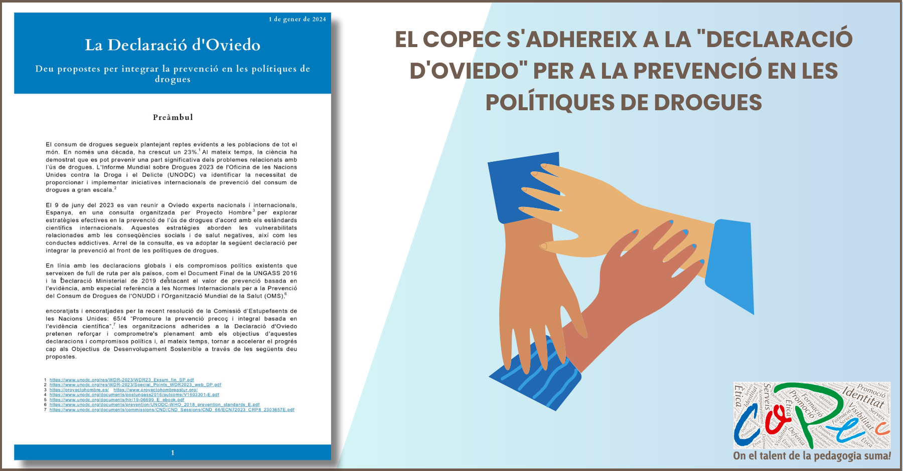 EL COPEC S’ADHEREIX A LA "DECLARACIÓ D’OVIEDO 2024" PER A LA PREVENCIÓ EN LES POLÍTIQUES DE DROGUES