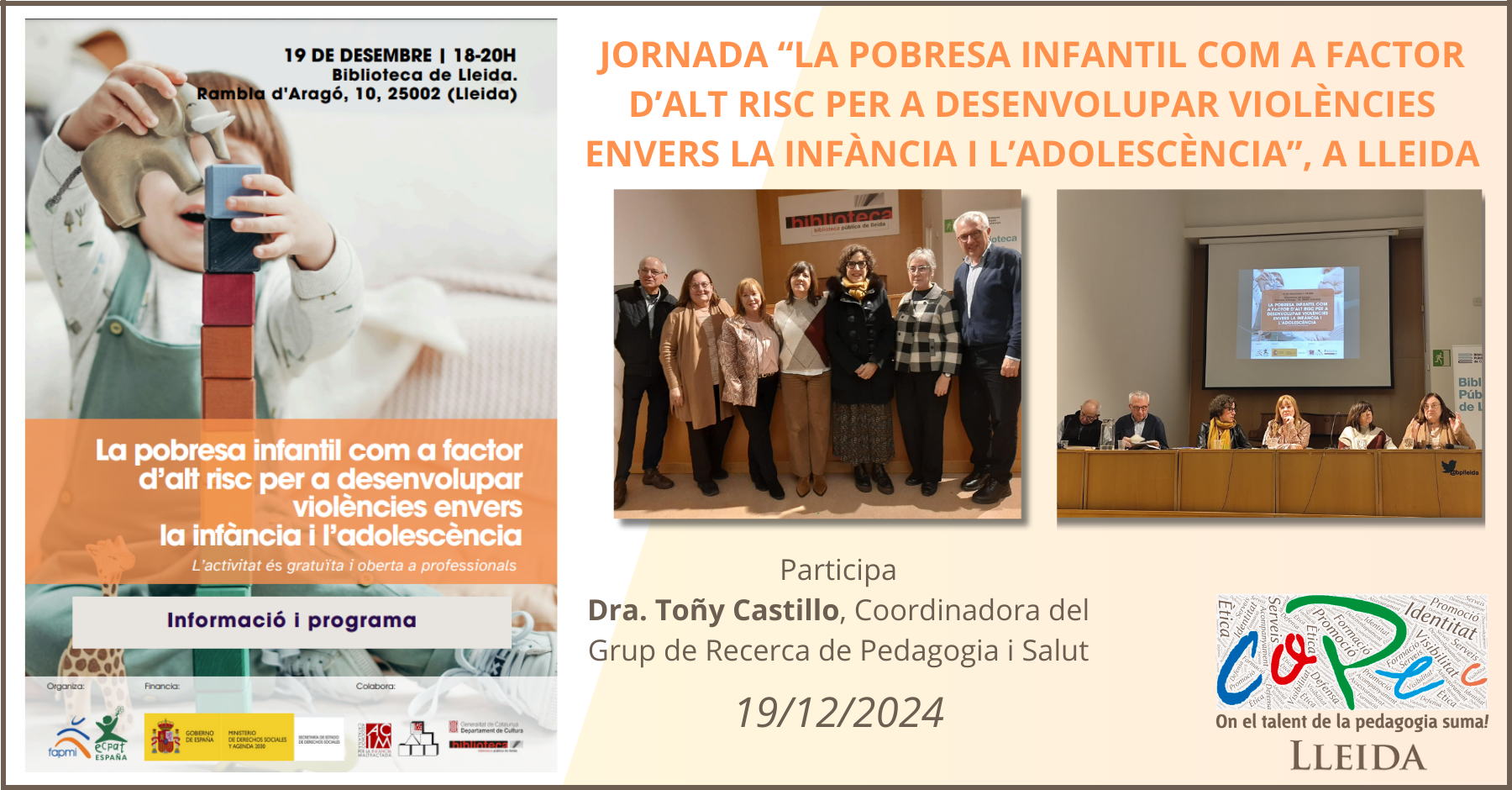 El passat 19 de desembre de 2024, es va celebrar a la Biblioteca de Lleida la jornada "La pobresa infantil com a factor de alt risc per desenvolupar violències", organitzada per l’Associació Catalana per la Infància Maltractada (ACIM).