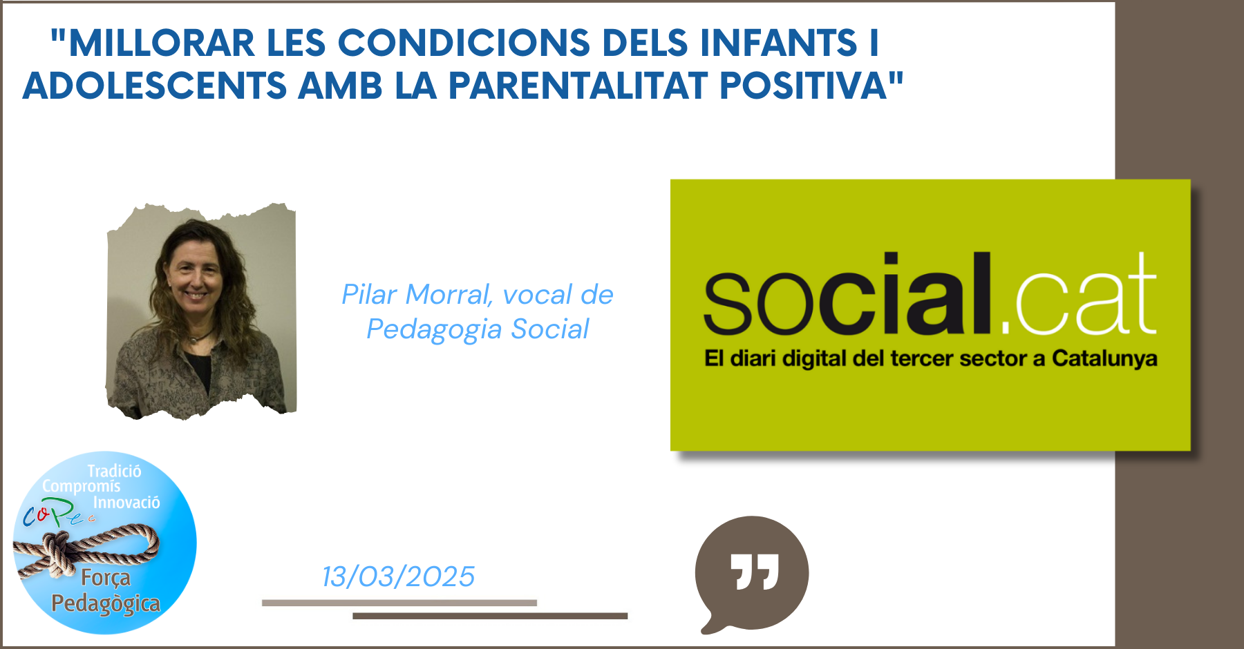 "MILLORAR LES CONDICIONS DELS INFANTS AMB LA PARENTALITAT POSITIVA", SOCIAL.CAT - PILAR MORRAL
