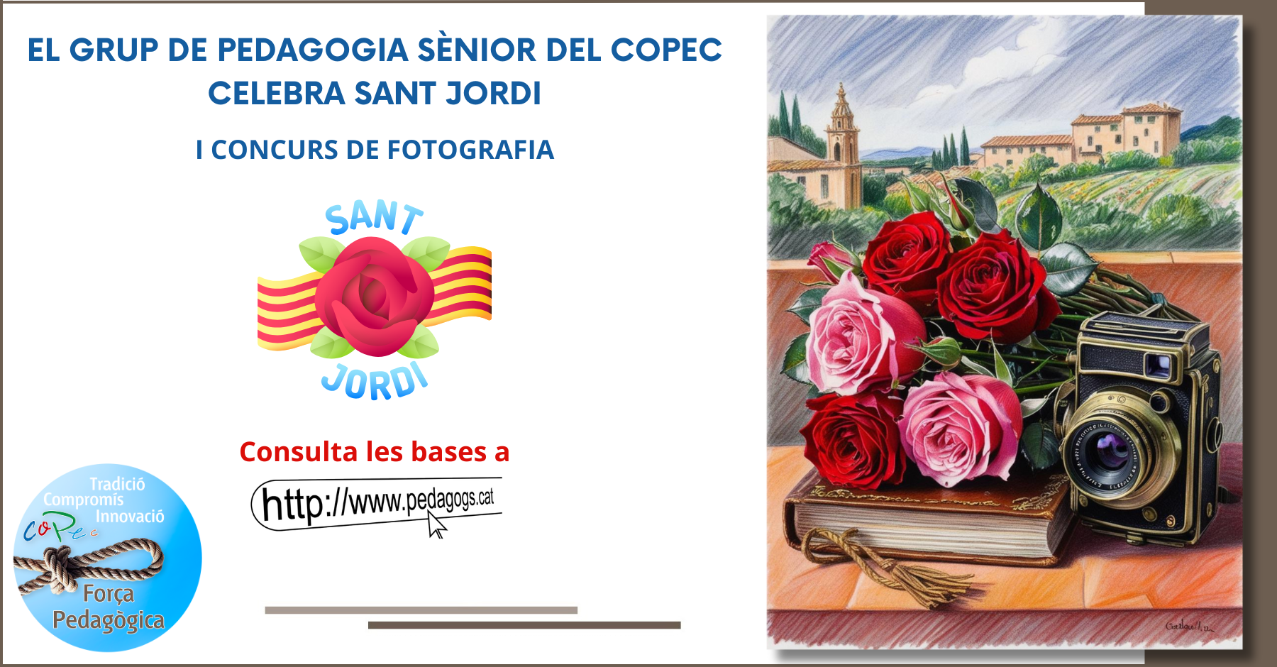 Amb motiu de la diada de Sant Jordi, des del Grup de Pedagogia Sènior us convidem a participar en una activitat especial per celebrar aquesta festivitat tan arrelada a la nostra cultura. Volem que sigui un espai de trobada, creativitat, reflexió sobre la cultura, la llengua i la pedagogia.