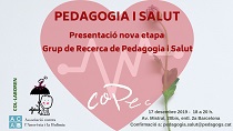 El Grupo de Investigación de Pedagogía y Salud, heredera del GI de Salud, Terapéutica y Calidad de Vida, inicia una nueva etapa, en la que presentará sus objetivos desde donde promoverá y dará a conocer los espacios de acción pedagógica en el ámbito de la salut, generando conocimiento mediante el estudio, la investigación y la innovación en el área de la educación y la salud.