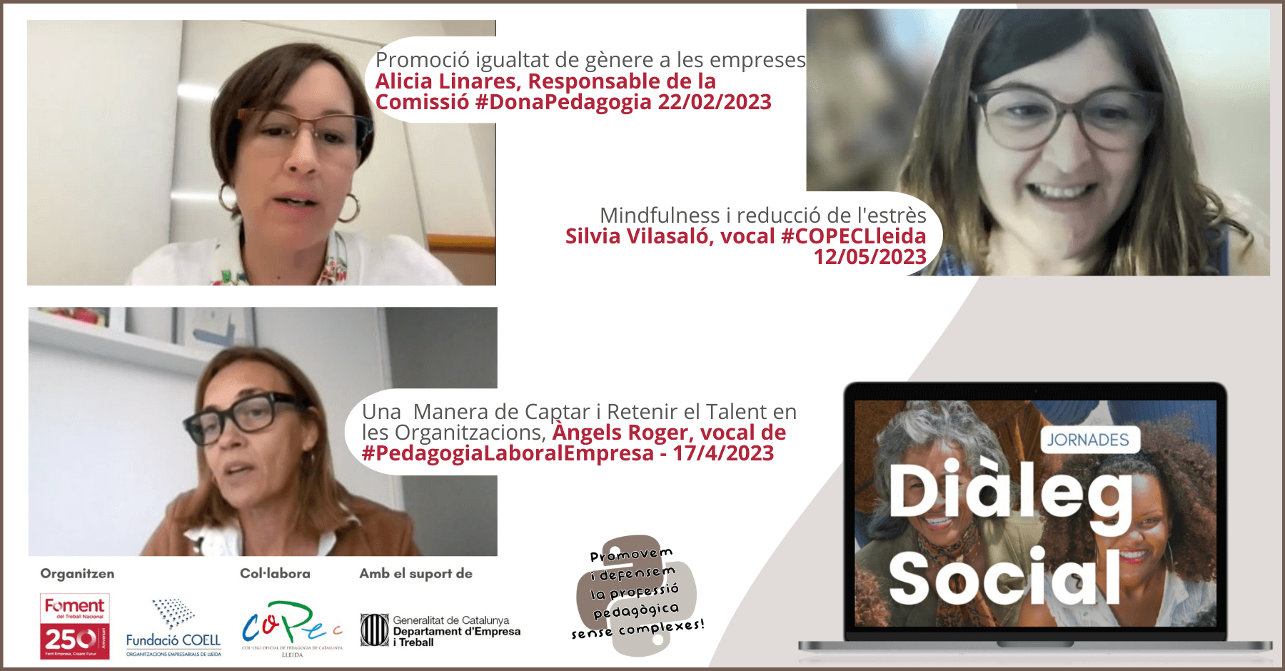 Un año más, la Confederació d’Organitzacions Empresarials de Lleida y Fomento del Trabajo Nacional, con la colaboración del Col·legi Oficial de Pedagogia de Catalunya de la demarcación de Lleida, han organizado las Jornadas de Diálogo Social con el objetivo de fomentar el desarrollo profesional para avanzar hacia la estabilidad y la calidad del empleo. Estas jornadas contaron con cuatro destacadas intervenciones a cargo de Alicia Linares, Àngels Roger, vocal de Pedagogía Laboral y de Empresa, y Sílvia Vilasaló, vocal del COPEC en Lleida.