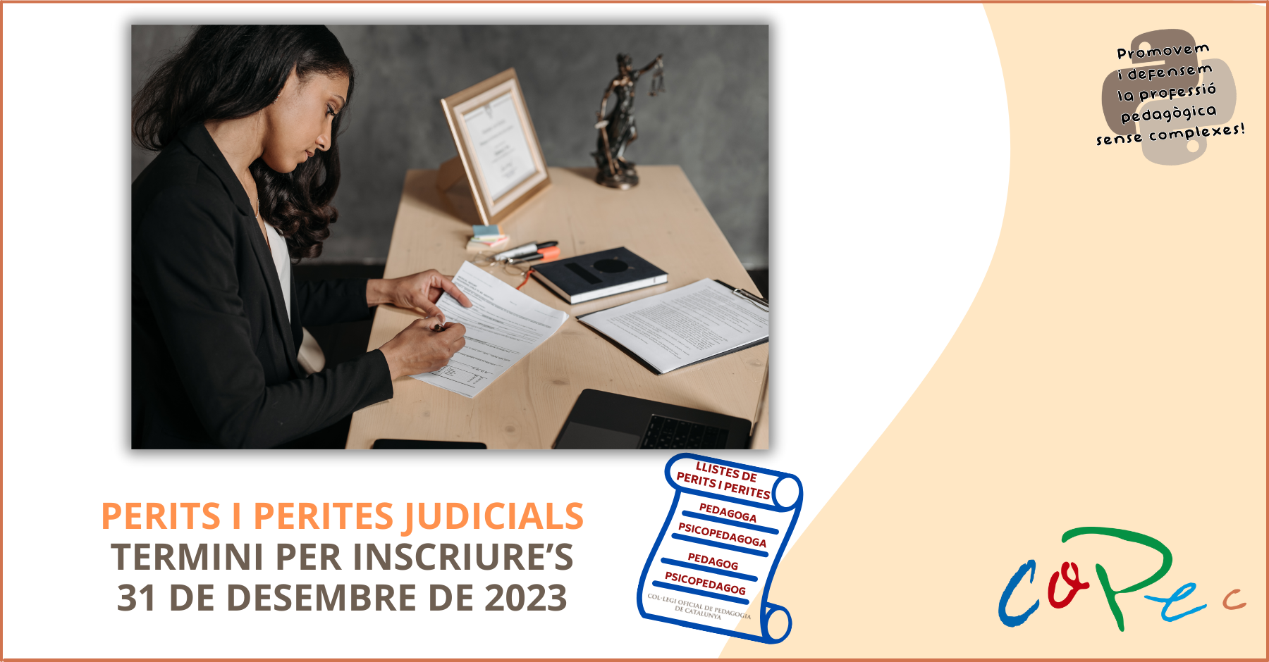 El Departamento de Justicia de la Generalitat de Catalunya inicia el proceso de actualización de listas de peritos y peritas para actuar ante los órganos judiciales para el año 2024. Las personas colegiadas que deseen formar parte de las LISTAS del 2024 (Normativa Ordre JUS/419/2009 y LEC - arts. 341 i 343) estarán sujetas a ser llamadas por un órgano jurisdiccional del ámbito que hayan escogido y solo podrán excusar el nombramiento por las causas establecidas en l’art. 343 de la LEC.