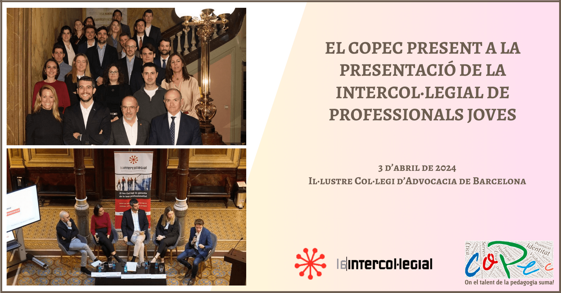 El próximo 3 de abril, a las 19 h, la Associació Intercol·legial de Col·legis Professionals de Catalunya organiza el Acto de Presentación de la Intercol·legial de Profesionales Jóvenes, de la que formamos parte, representados por Eloi Català de la secretaría técnica.