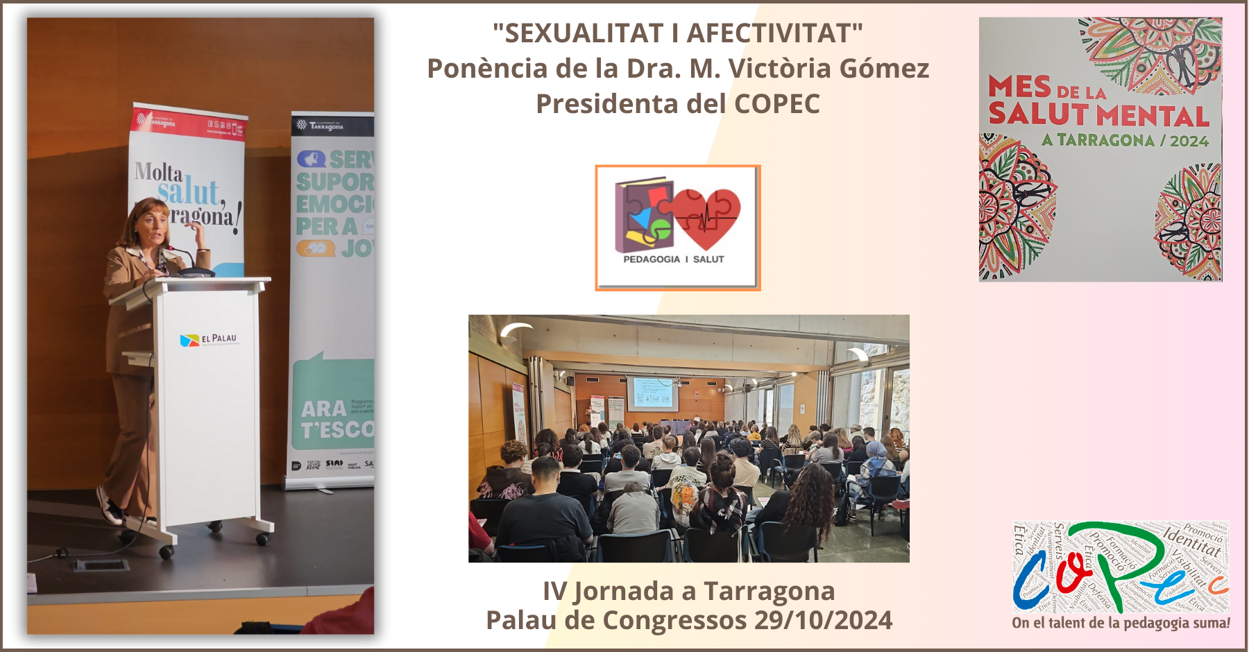 La ponencia inaugural ha estado a cargo de la presidenta Col·legi Oficial de Pedagogia de Catalunya, Dra. Mª Victòria Gómez Serés, quien ha presentado "Orientaciones Pedagógicas en el ámbito de la sexualidad afectiva", una GUÍA elaborada por el Grup de Recerca de Pedagogia i Salut del COPEC.