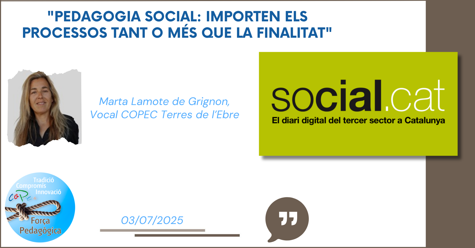 "PEDAGOGIA SOCIAL: IMPORTAN LOS PROCESOS TANTO Y MÁS QUE LA FINALIDAD", SOCIAL.CAT - M. L.G