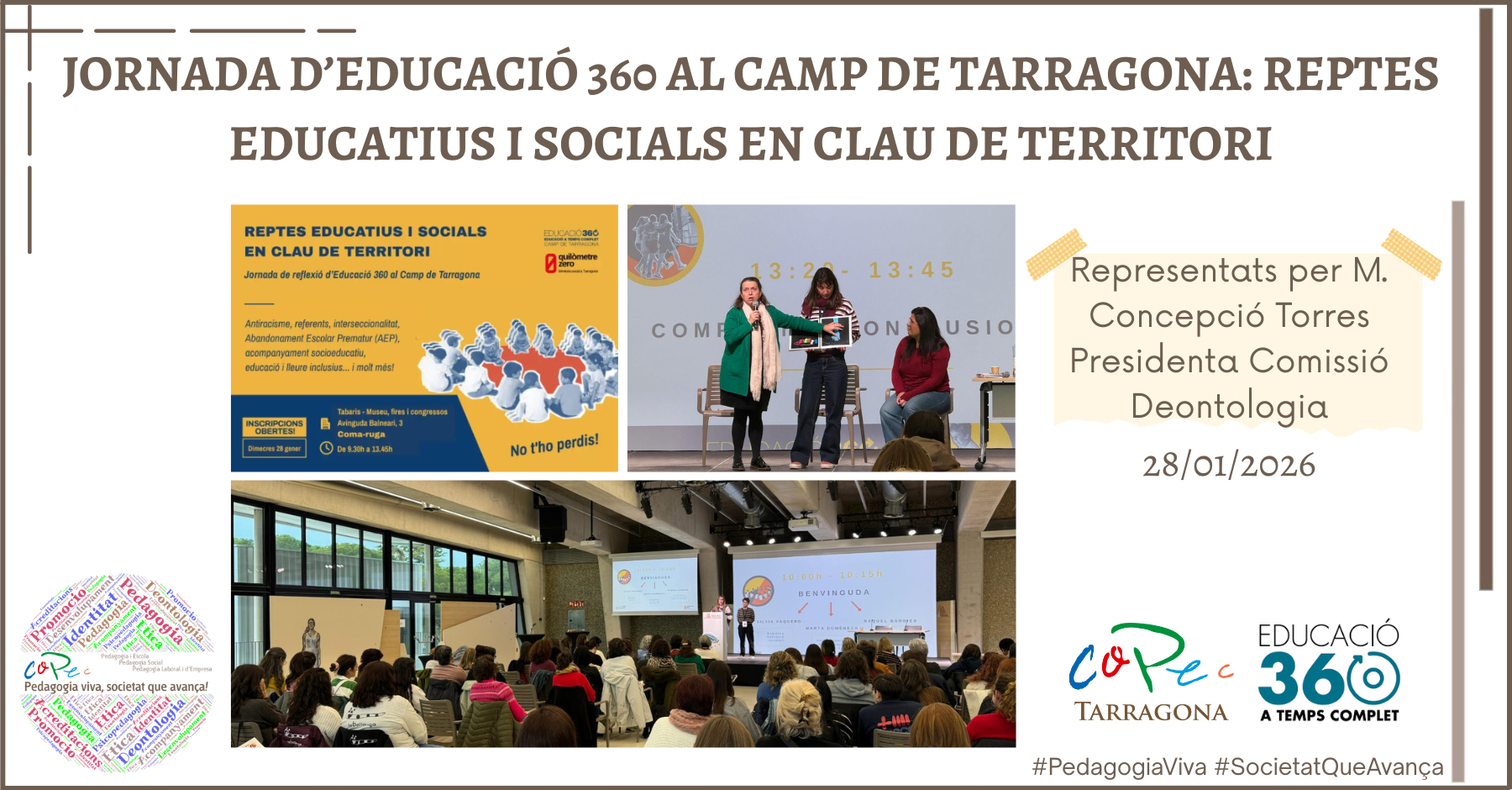 El 28 de enero se llevó a cabo la Jornada “Retos Educativos y Sociales en Clave de Territorio" de la Xarxa d’Educació 360 y la Associació Quilòmetre Zero en el Espai Tabaris de Coma-ruga, con la colaboración del Ajuntament del Vendrell.