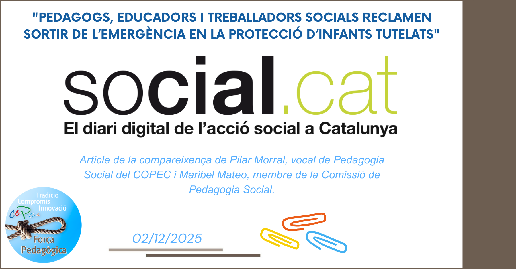 “PEDAGOGOS, EDUCADORES Y TRABAJADORES SOCIALES RECLAMAN SALIR DE LA EMERGENCIA”, SOCIAL.CAT