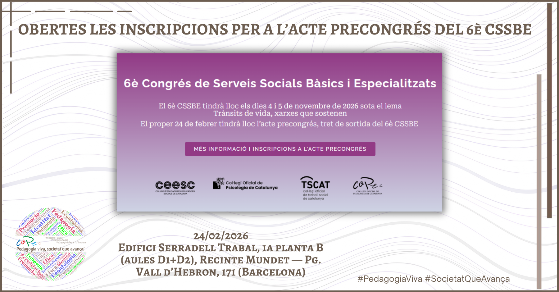 OBERTES LES INSCRIPCIONS PER A L’ACTE PRECONGRÉS DEL 6è CSSBE 2026